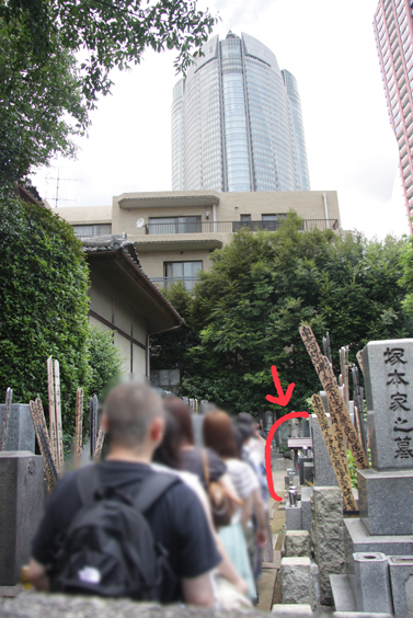 初めて塀越しに見た、沖田総司のお墓。